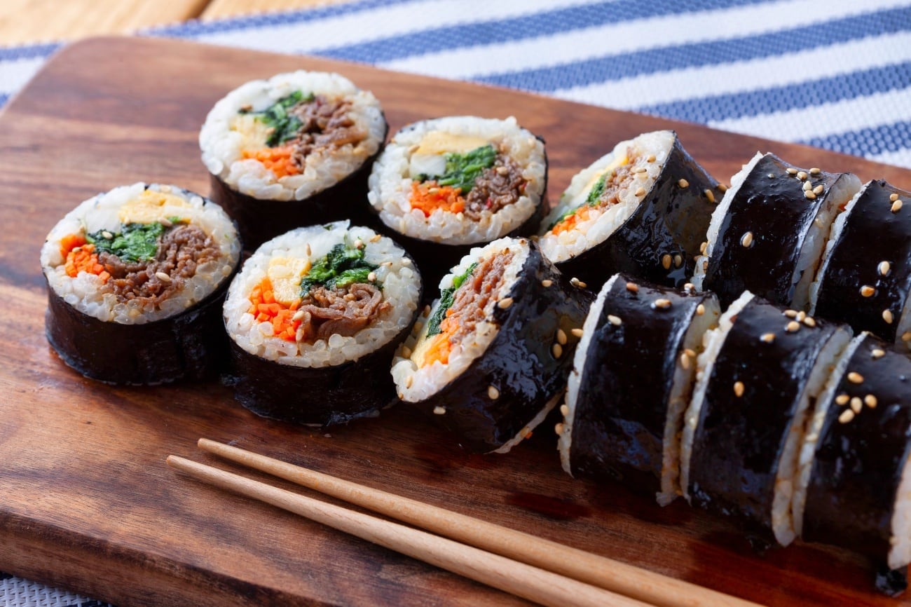 弊社で一本一本、手作業で巻いたキンパ(韓国風のりまき)のセットです。